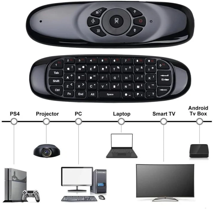 🎯 3 في 1 – كيبورد + ريموت + ماوس هوائي:
