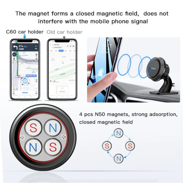 اختبر الراحة والمرونة أثناء القيادة مع حامل الجوال المغناطيسي للسيارة C60 (C60 Magnetic Car Holder)، المصمم ليجمع بين الثبات القوي والتصميم العصري المدمج.