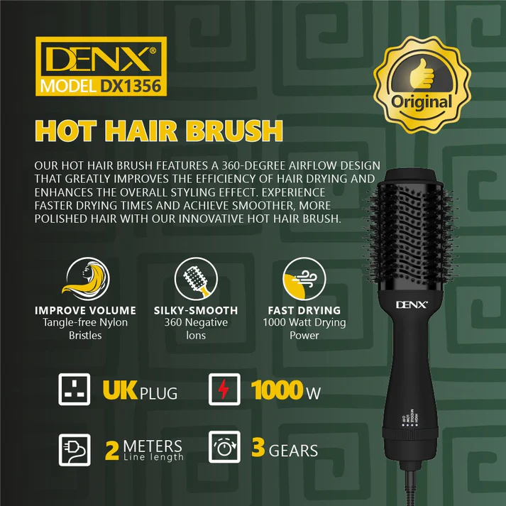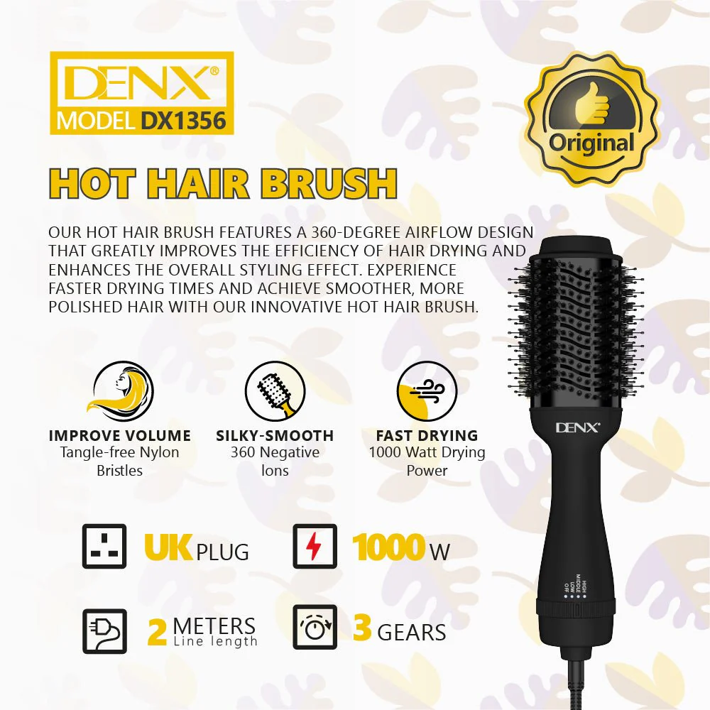 احصلي على تصفيف مثالي بلمسة واحدة مع فرشاة الشعر الساخنة من Denx – أداة تصفيف احترافية بقدرة 1000 واط تجمع بين التجفيف، التنعيم، والتكثيف في خطوة واحدة فقط!