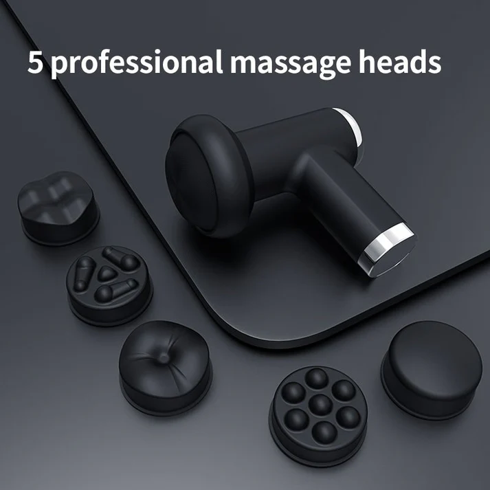 يتميز الجهاز بـ 5 رؤوس تدليك قابلة للتبديل لتلبية احتياجات مختلفة من التدليك، سواء كنت تبحث عن تخفيف آلام بعد التمارين أو استرخاء عام للجسم.