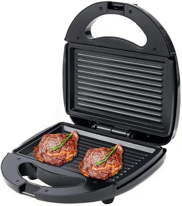 تعمل بقوة 750 واط لتسخين سريع وتحمير متساوٍ، وتأتي بسطوح غير لاصقة لضمان إخراج السندويش بسهولة وتنظيف مريح بعد الاستخدام.