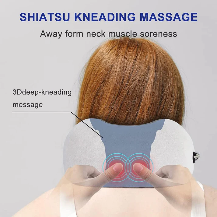 استمتع براحة فاخرة أينما كنت مع وسادة تدليك الرقبة الذكية القابلة للنفخ بتصميم مبتكر على شكل حرف U أو C، تمنحك دعمًا مثاليًا للرقبة والرأس مع تدليك مهدئ بعد يوم طويل من العمل أو السفر.